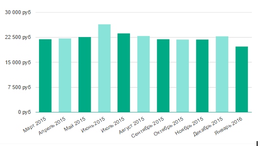 В сравнении с началом прошлого года (январь 2015), 22500 рублей – увы, прослеживается негативная тенденция, и это на фоне роста цен на основную группу потребительских товаров.